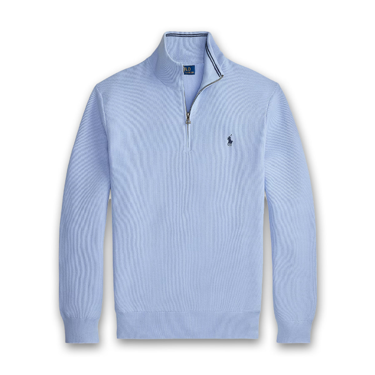 Mesh-Knit Cotton 1/4 Zip Jumper in Sky Blue