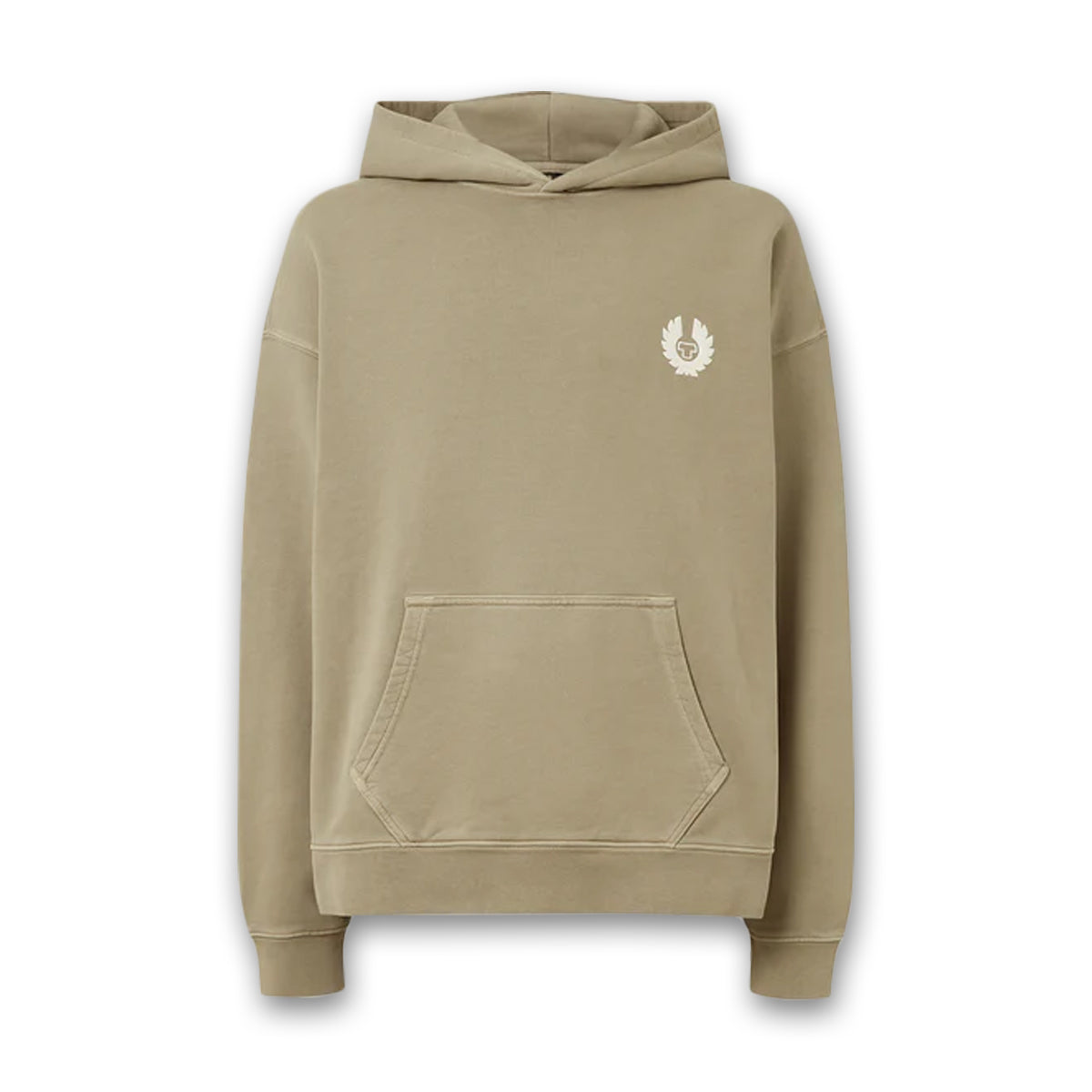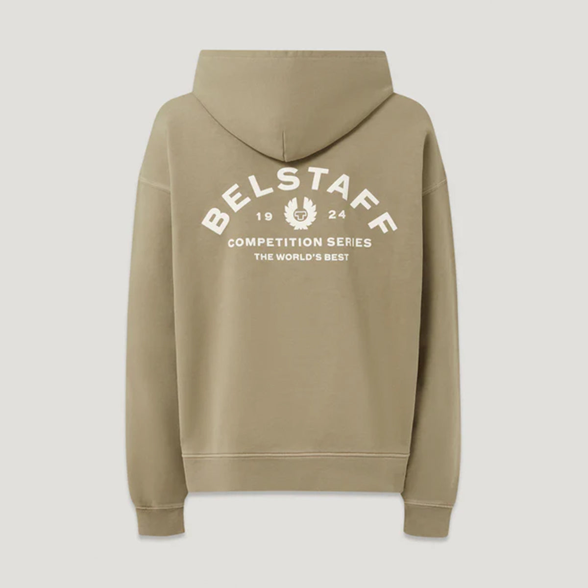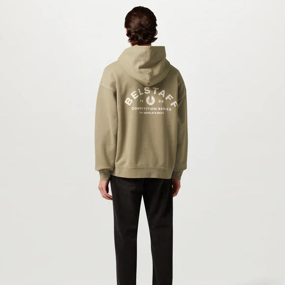 The Competition series features the original '90s Belstaff logo from customised archival competition race suits. The Competition hoodie in Dark Sand is expertly crafted from heavyweight garment-dyed cotton fleece for superior warmth and durability, making it ideal for cold weather.