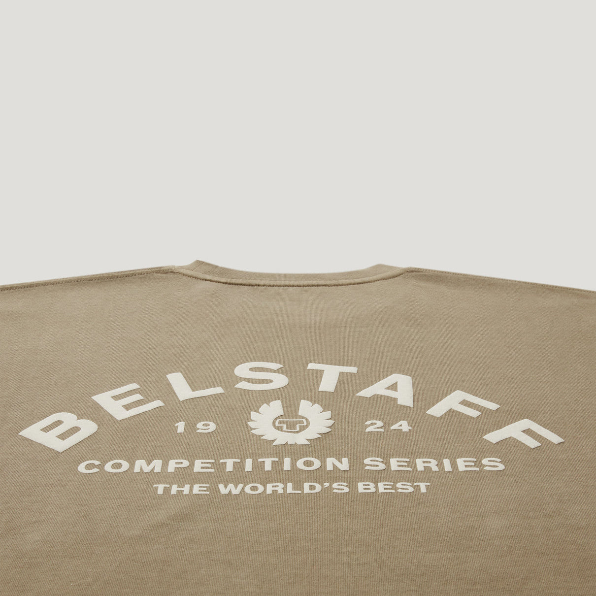 The Competition series features the original '90s Belstaff logo from customised archival competition race suits. The Competition T-shirt in Dark Sand is expertly crafted from heavy garment-dyed jersey for a soft, comfortable feel, with a pre-washed, oversized fit, and a unique, vintage aesthetic.
