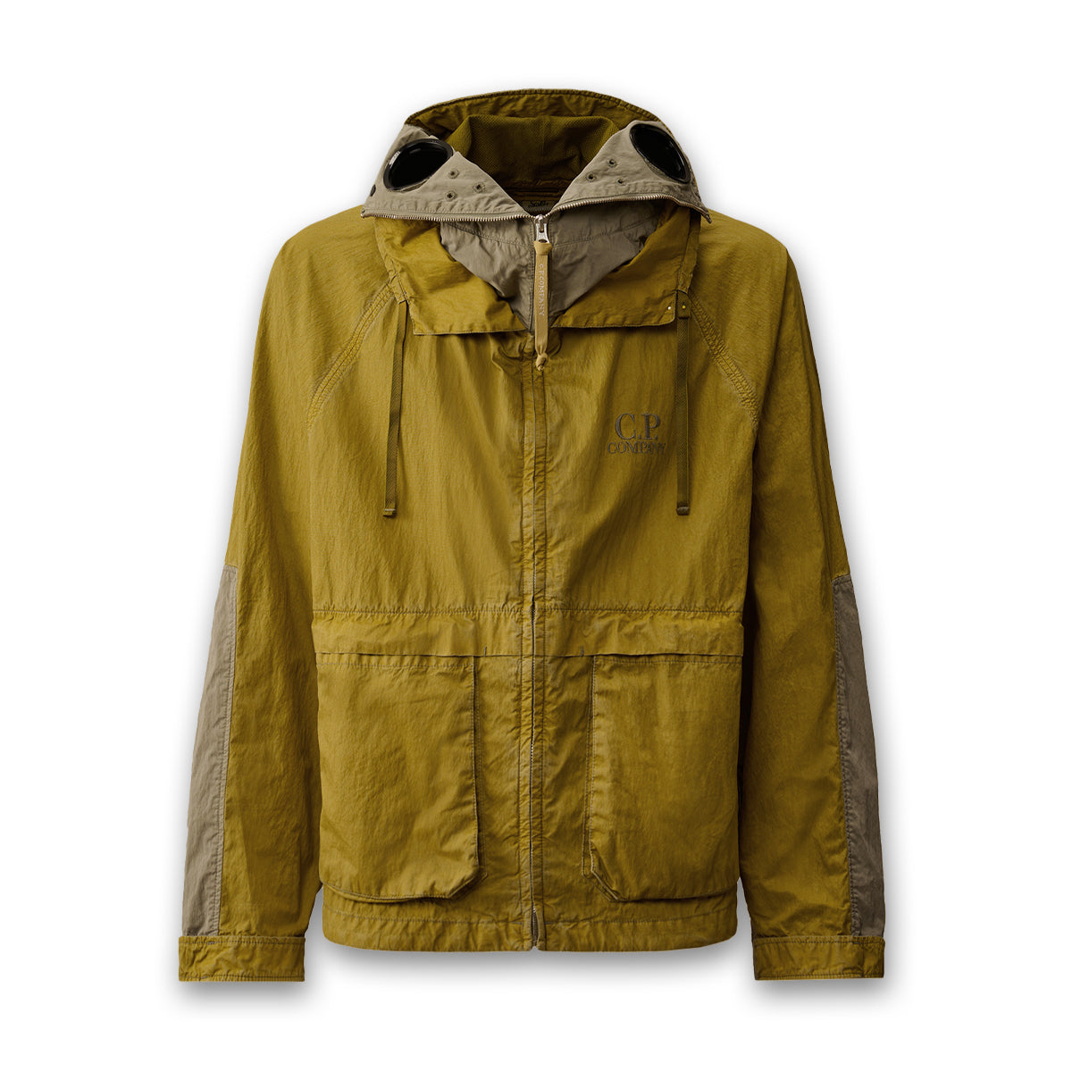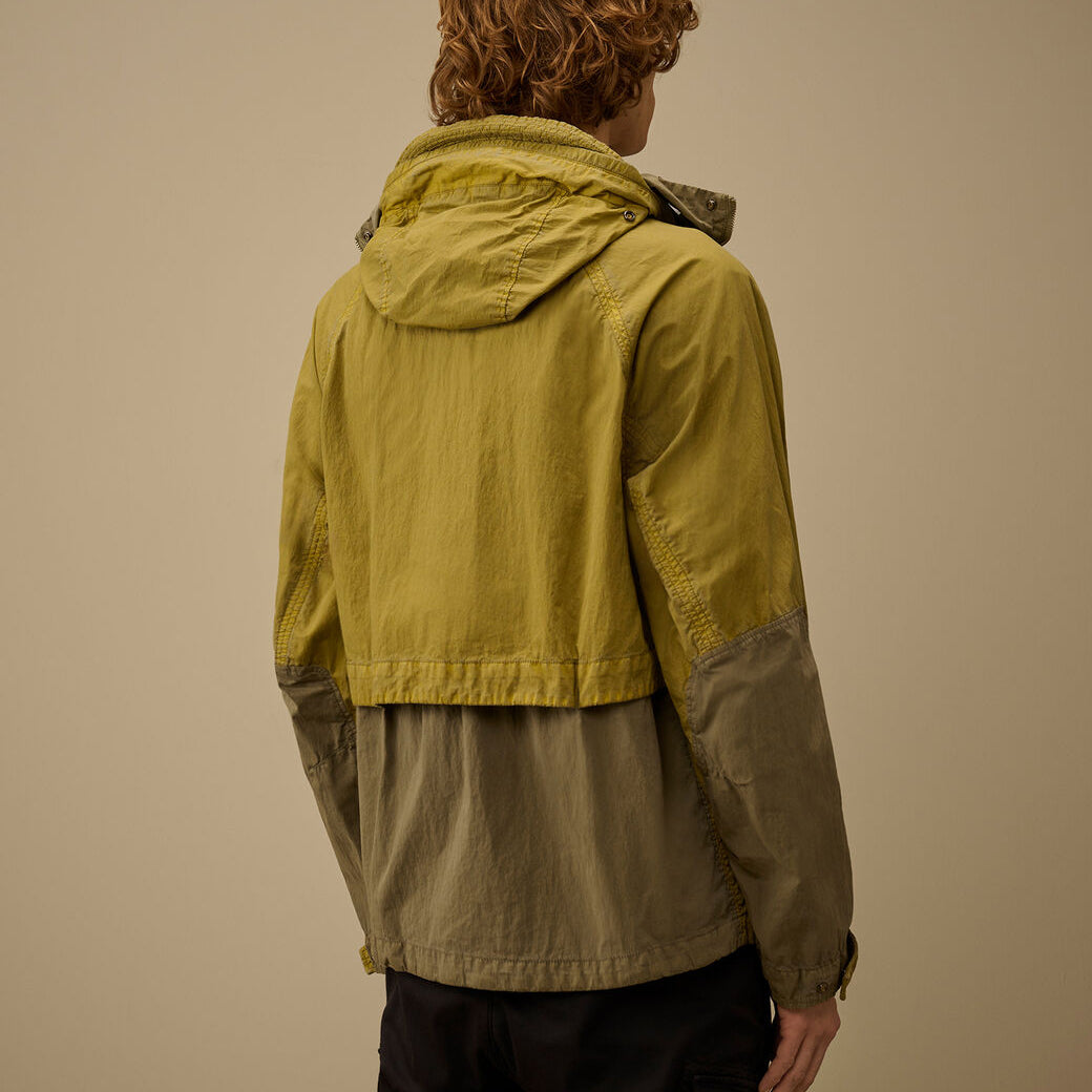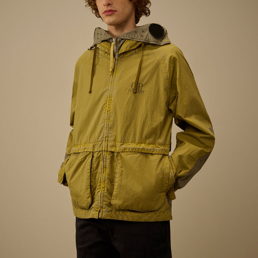 Explorer jacket crafted from 50 Fili Wax, the iconic nylon and cotton fabric by C.P. Company, presented here in a version featuring a semi-transparent, water-resistant synthetic wax-effect coating. The polyurethane outer layer enhances the fabric’s protection against the elements.The model features an adjustable Explorer hood, full zip fastening, and an embroidered logo on the chest. Equipped with hidden front flap pockets with snap-button closure, a drawstring-adjustable hem, and mesh lining for improved breathability. A rear ventilation panel and contrasting details on the back complete the functional and technical design. Garment dyed with a double dyeing process, in which the nylon and cotton fibres are dyed in different colours to create unique tonal contrasts and depth. Finished with an anti-drop treatment. Regular fit.