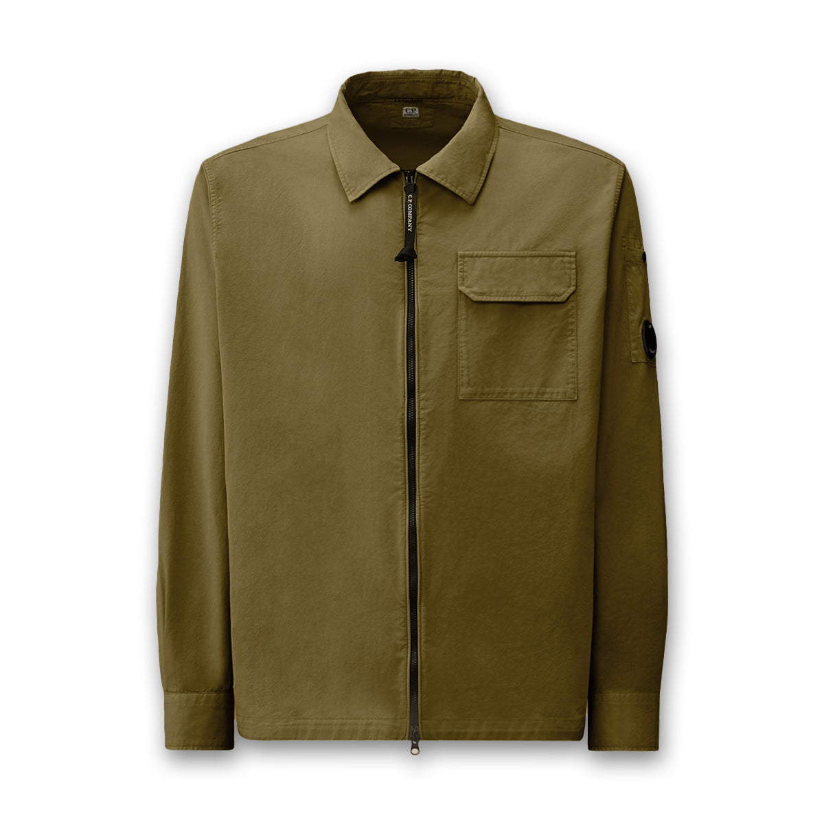 Overshirt crafted from organic cotton gabardine, a durable yet soft fabric, certified by the Global Organic Textile Standard (GOTS).The model features a classic collar, a two-way full zip fastening, and a chest flap snap pocket. Completing the design are the iconic C.P. Company Lens on the sleeve pocket and adjustable button cuffs for a functional fit. Garment dyed to achieve unique colour depth and tonal variations that evolve with time and wear. Made in Italy. Regular fit.
