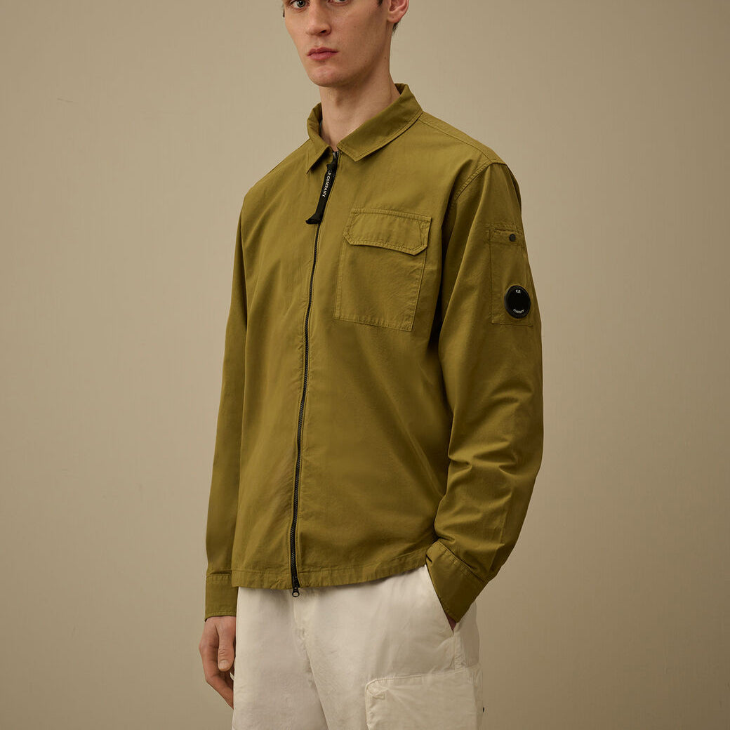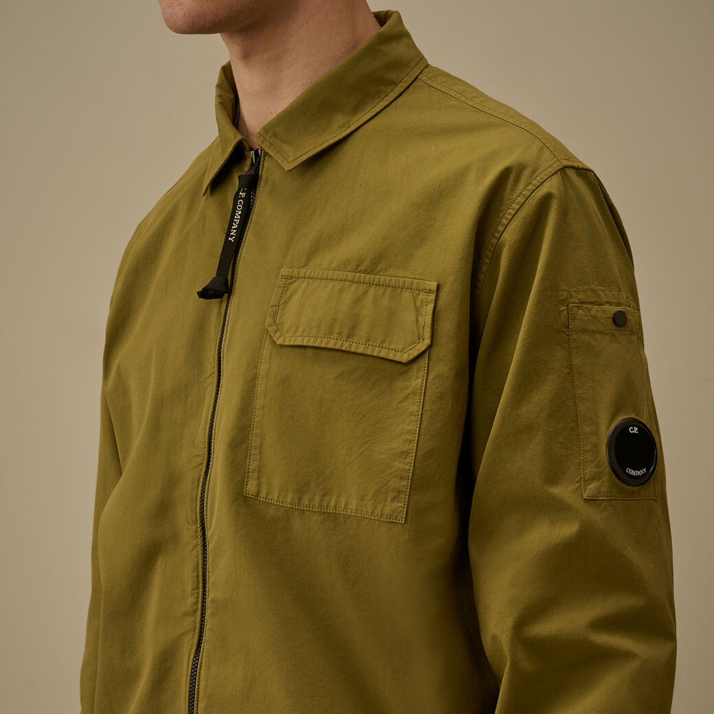 Gabardine Zipped Lens Overshirt in Dried Herb