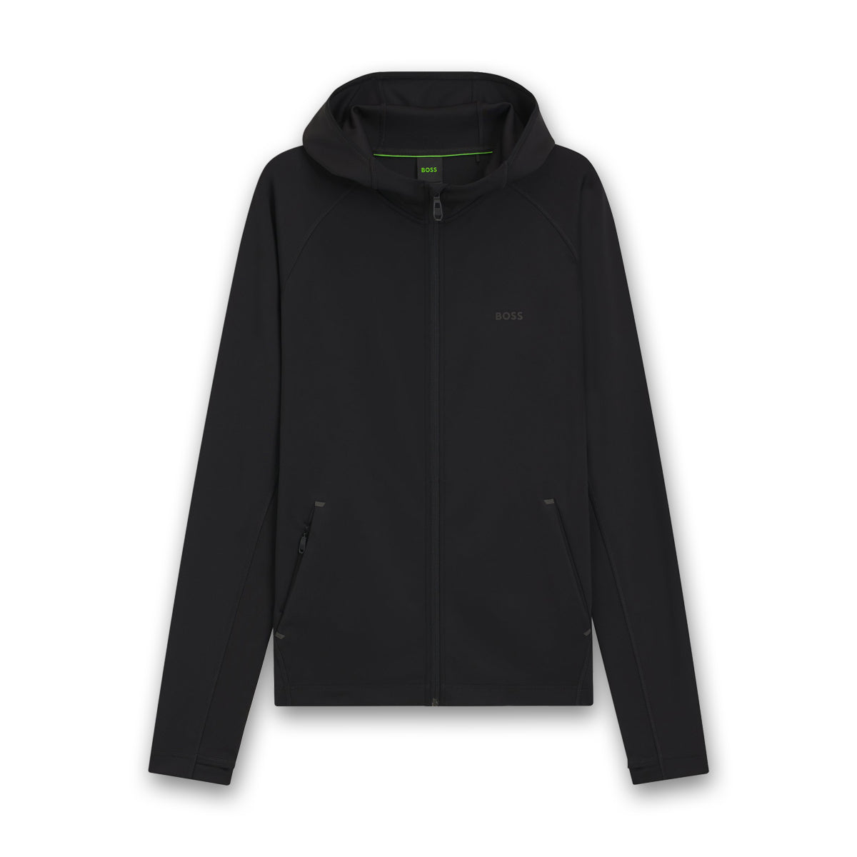 In quick-dry fabric with added stretch, this BOSS Menswear hoodie is an essential layer. Regular fit. Decorative reflective branding. Athleisure design for boosted comfort. This product contains at least 80% better raw materials. This product is partly created with recycled polyester. We as HUGO BOSS prefer recycled polyester from pre- and post-consumer textile waste and do our best to phase out polyester from PET bottles.