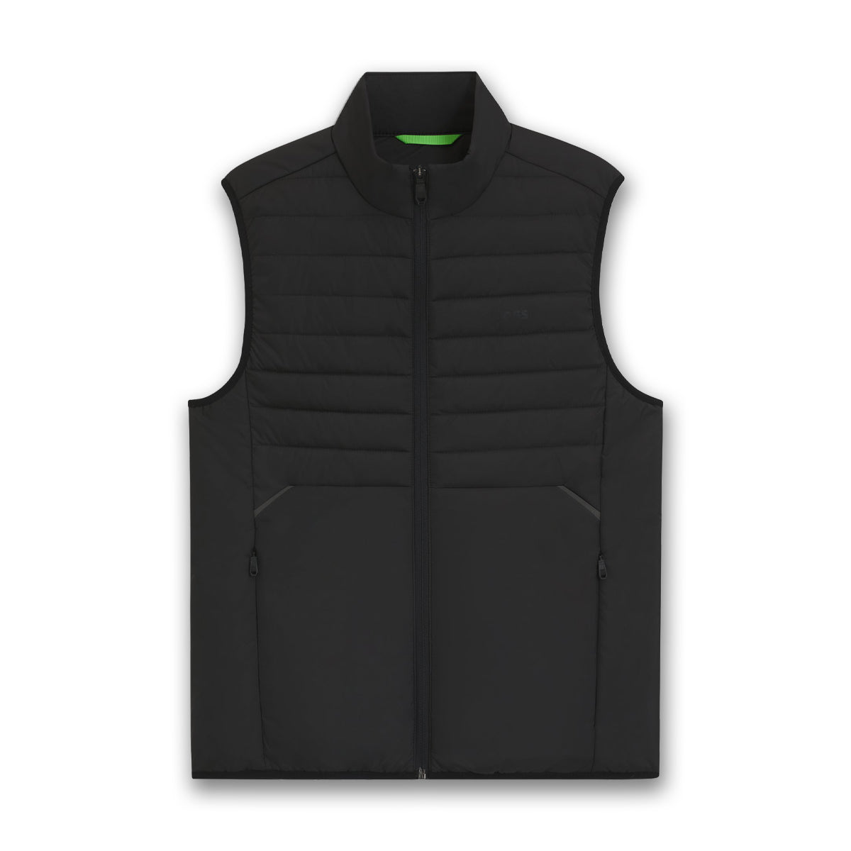 Crafted in padded, water-repellent fabric, this BOSS Menswear gilet is an innovative trans-seasonal option. Decorative reflective details for better visibility. Elasticated hem.
