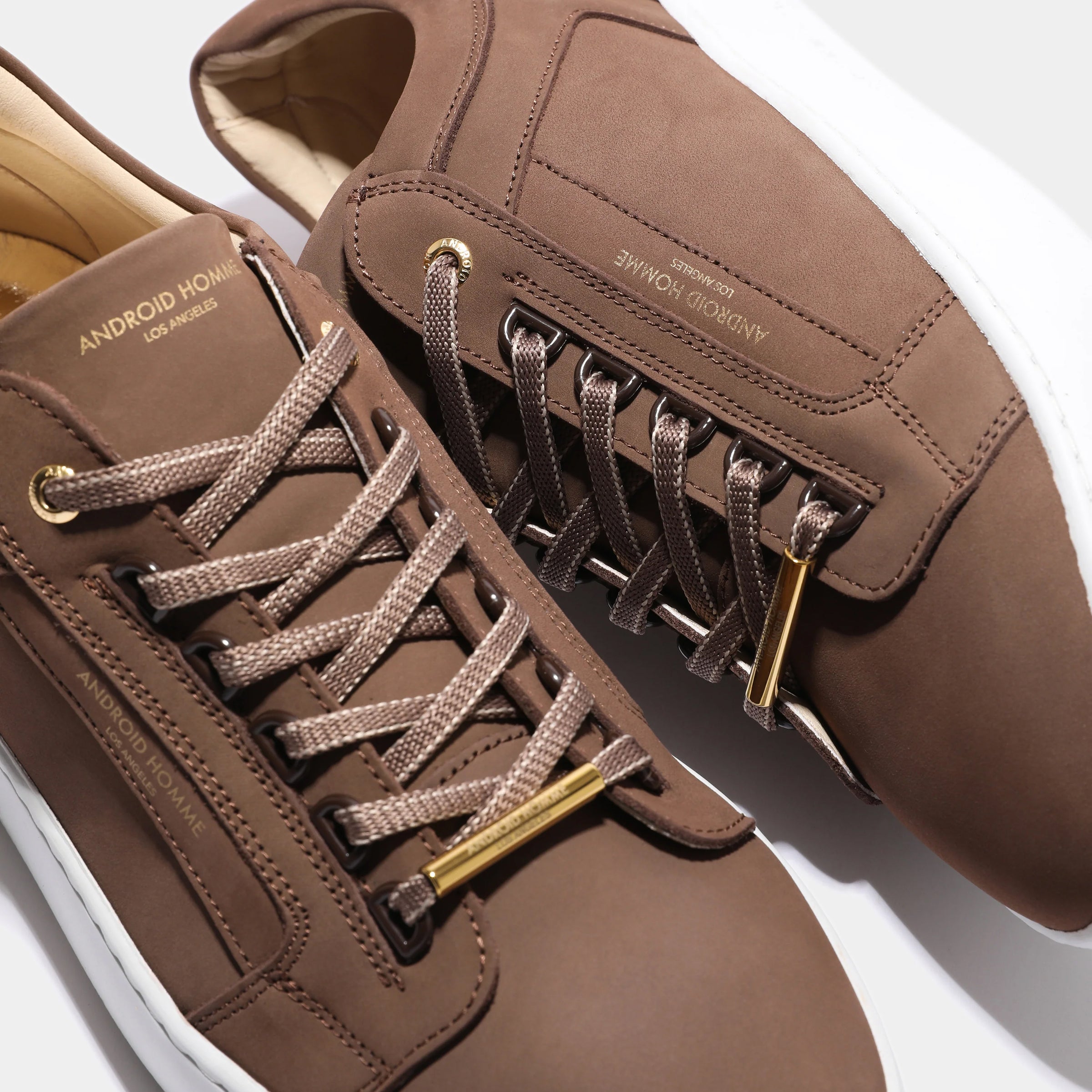 A D‑ring lace system introduces a functional yet contemporary edge, complemented by two‑colour edge‑trim laces for subtle contrast. The look is further enhanced by a tubular gold brass lace detail, laser‑engraved with the signature logo, adding a polished metallic accent to the clean silhouette.