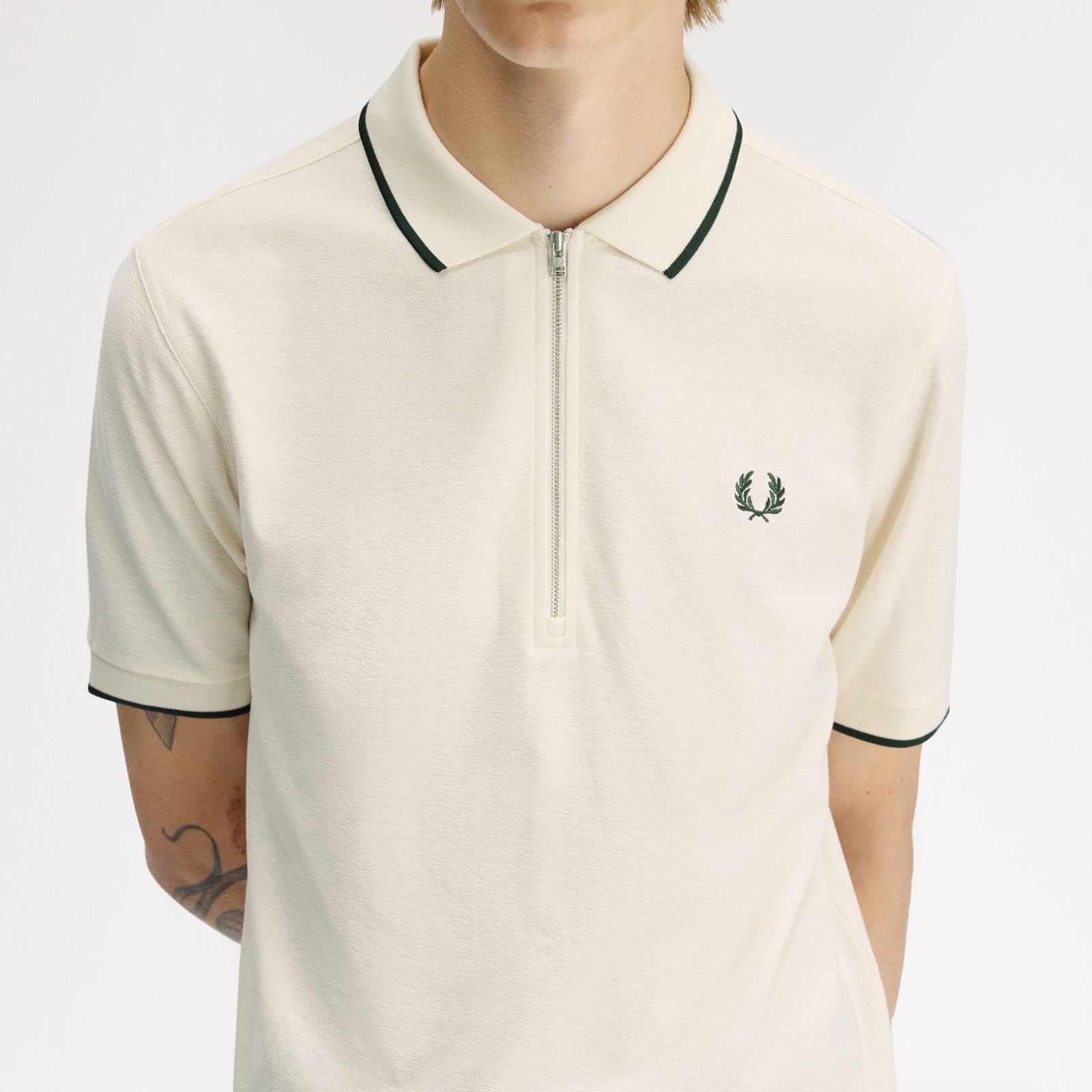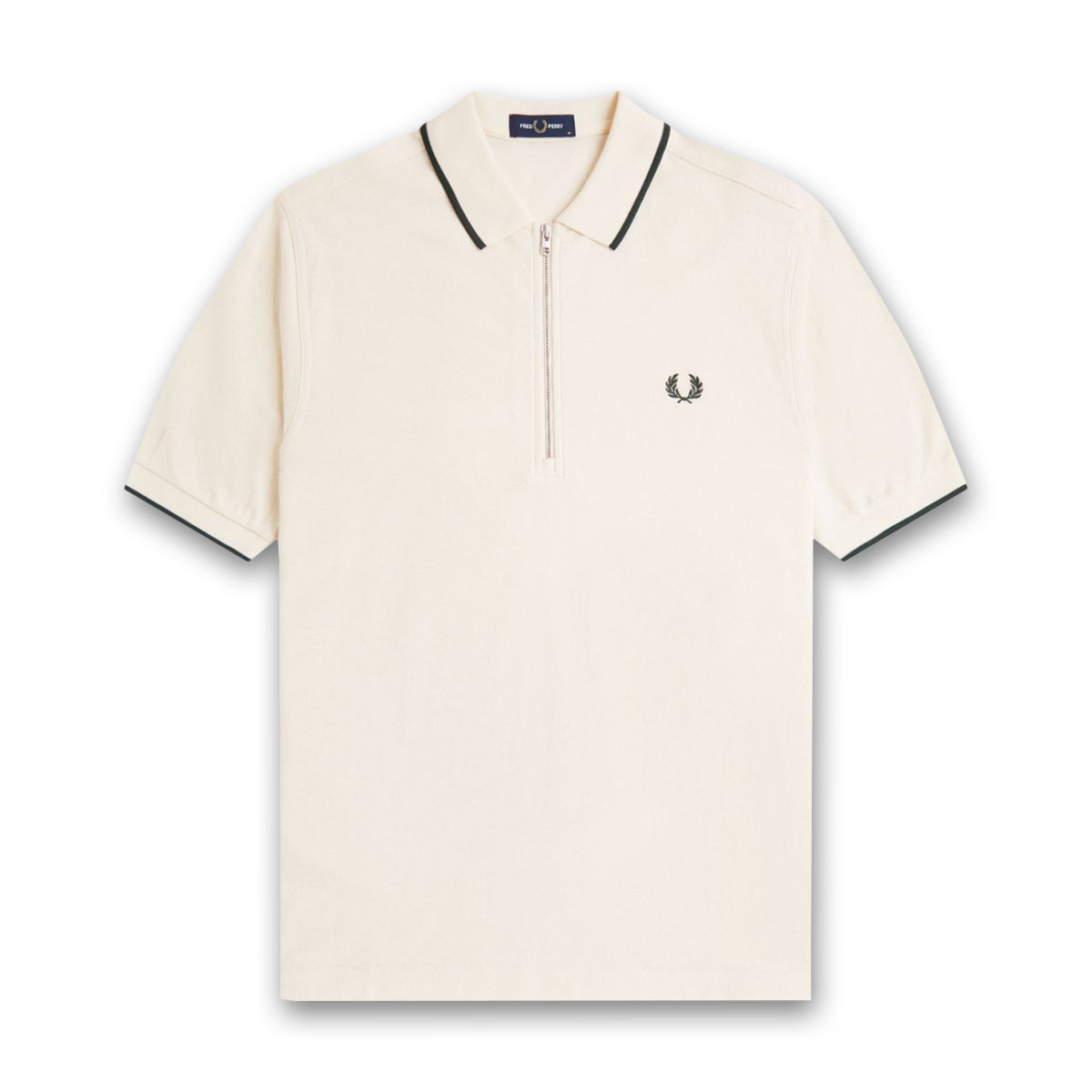 A crepe cotton piqué polo shirt with single tipping detail at the collar and a silver tone metal zip.