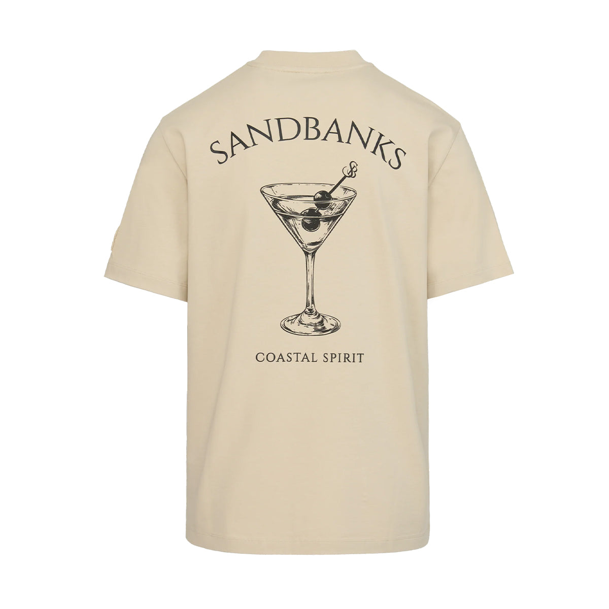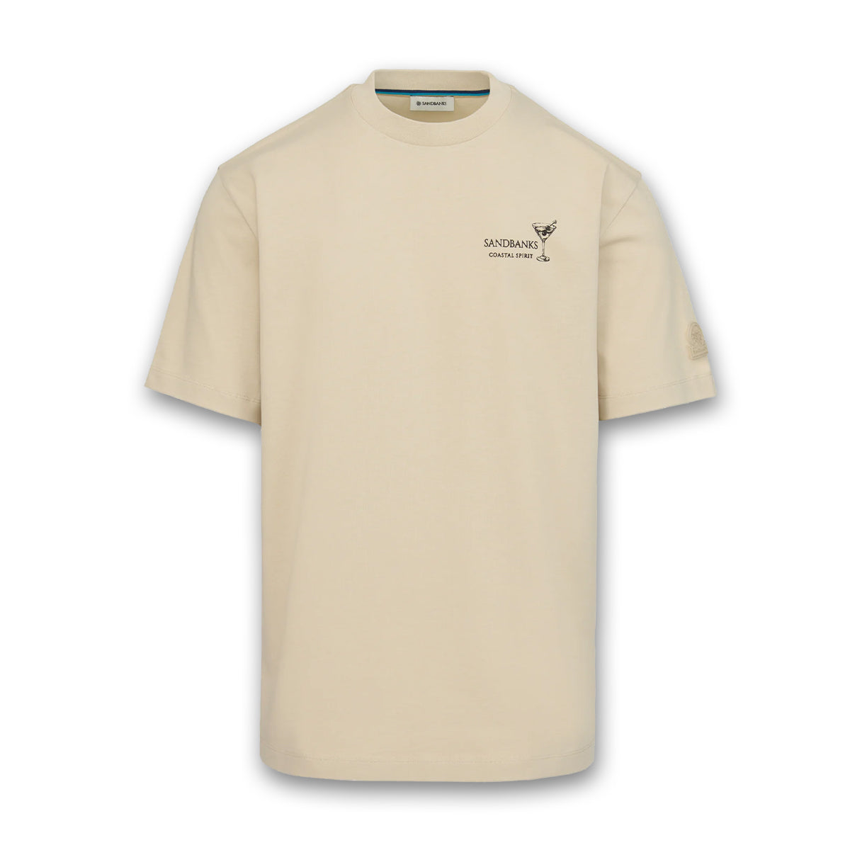 The Sandbanks coastal spirit t-shirt in stone is crafted from 100% BCI cotton in a substantial 260 GSM weight, offering a structured yet comfortable feel. It features a coastal spirit artwork at the chest and back. Finished with a classic crew neckline, tri-colour neck binding and a logo badge at the sleeve.